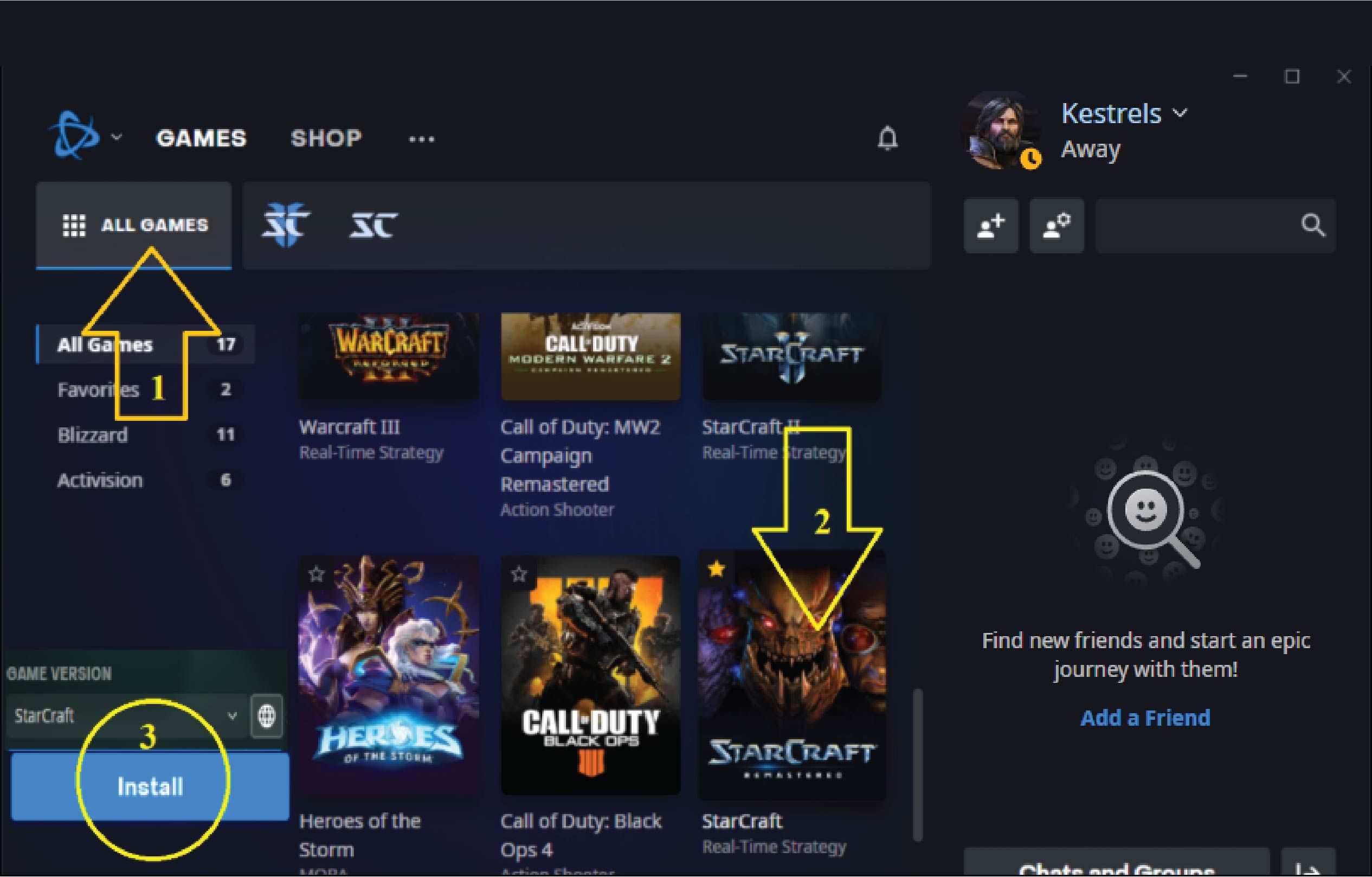 - Sau khi đăng nhập được vào BATTLE.NET chúng ta làm theo các bước như sau:
