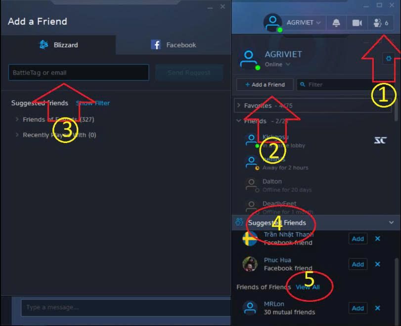 Bước 2: Để chơi chung với VN, hãy nhập vào số (3) Battle Tag sau :