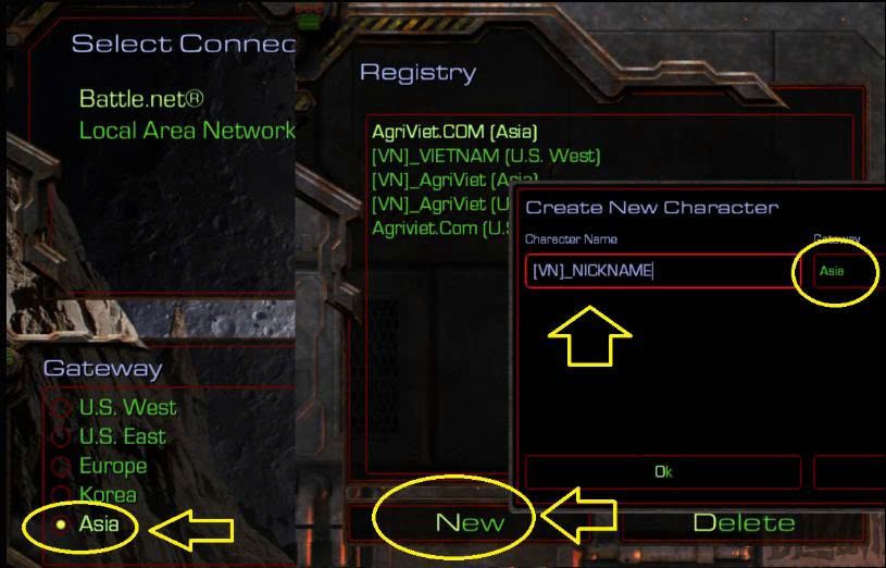 Bước 3: Tạo tên trong Game và chơi chung (Tạo tên cho từng Gateway, Korean riêng, Asia Riêng, US West riêng), không dùng chung được