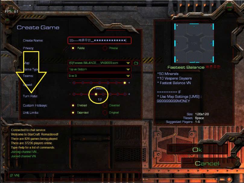 Nên vô Game do người HQ tạo, họ để Turn rate 24, LÀ BỊ kick ra. Nên anh em VN nên tự HOST game (CREAT) bằng cách đặt Turn Rate =12 và Đặt tên game tiếng Hàn mới có người vô